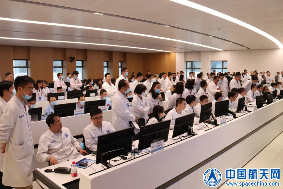 集团公司党组书记、董事长吴燕生,总经理、党组副书记徐强,党组成员、副总经理王海波,“人民科学家”叶培建院士,科技委主任包为民院士在北京航天飞行控制中心指导飞控工作。