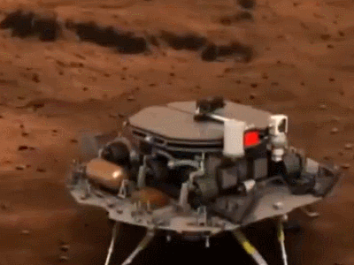 今天凌晨1时许,天问一号探测器在停泊轨道实施降轨,机动至火星进入轨道。4时许,着陆巡视器与环绕器分离,历经约3小时飞行后,进入火星大气,经过约9分钟的减速、悬停避障和缓冲,成功软着陆于预选着陆区。