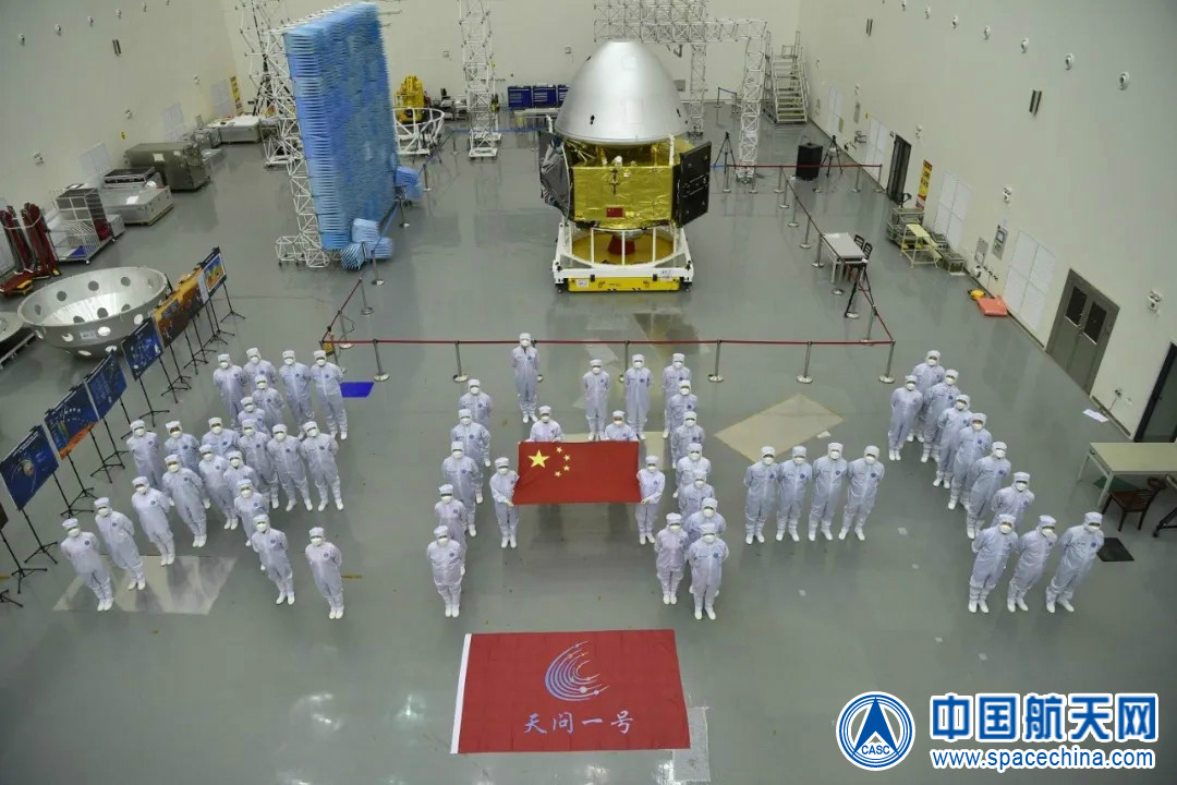 天问一号任务团队部分成员与探测器合影(五院供图)