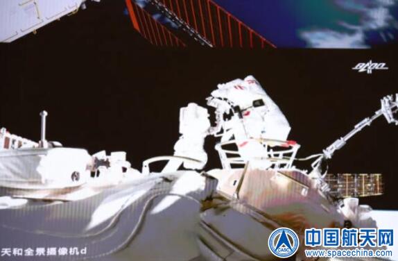 北京时间2021年7月4日8时11分,航天员刘伯明成功开启天和核心舱节点舱出舱舱门,截止11时02分,航天员刘伯明、汤洪波身着中国自主研制的新一代“飞天”舱外航天服,已先后从天和核心舱节点舱成功出舱,并已完成在机械臂上安装脚限位器和舱外工作台等工作,后续将在机械臂支持下,相互配合开展空间站舱外有关设备组装等作业。期间,在舱内的航天员聂海胜配合支持两名出舱航天员开展舱外操作。