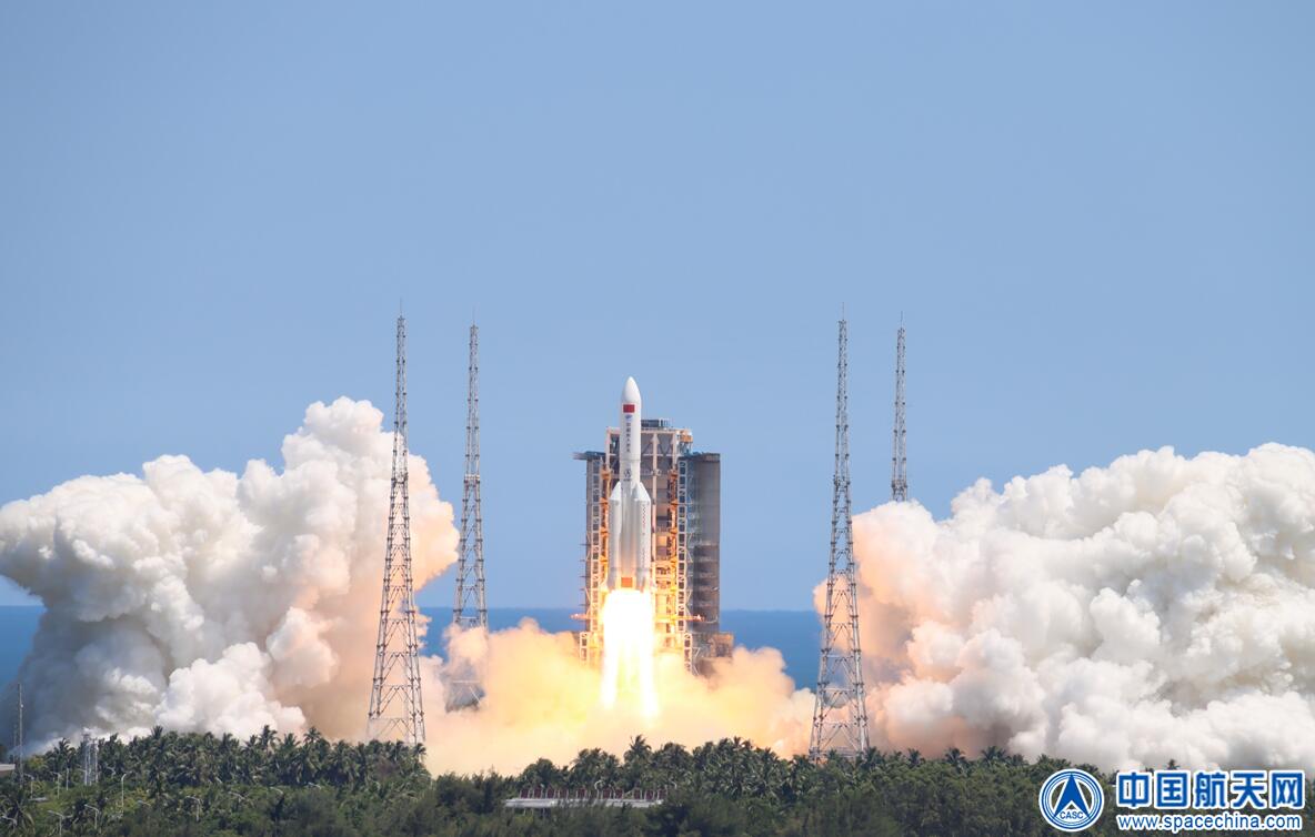 7月24日,14时22分,在中国文昌航天发射场,长征五号B运载火箭托举当今世界最大单体载人航天器中国空间站问天实验舱点火起飞,约8分钟后,舱箭分离,问天实验舱进入预定轨道,发射任务取得圆满成功。